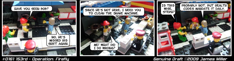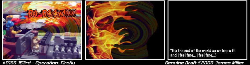 Well the universe has blown up. No more. Okay not really. Intermission. For the next few days, I will be displaying movie type trailers of comics I have read and some that answered my call for guest strips on a couple of forums I visit. Don't worry, Genuine Draft will be back.