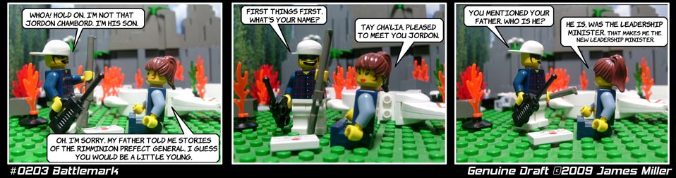 Got my fonts installed and things are starting to get back to normal in comic making. The Battlemark strips are made a bit differently than most of the Genuine Draft comics. For one, there were 35 finished strips which had to be tweeked. I had to add the current number for them, update the copyright stuff. And they were done in Photoshop exclusively. So they are a bit different. It's also why the fonts for the words are smaller. If you noticed, some of the Battlemark strips are really wordy.