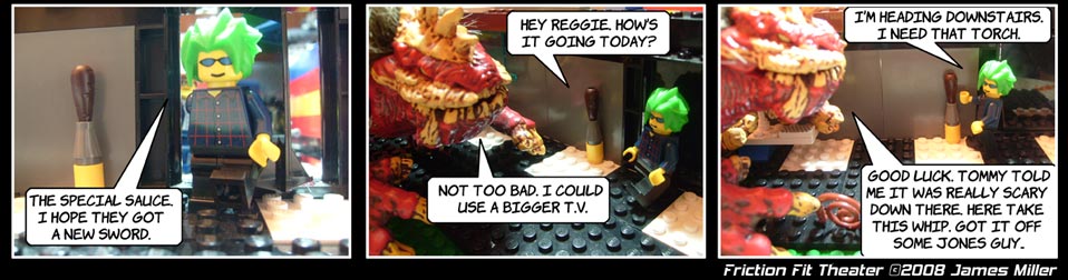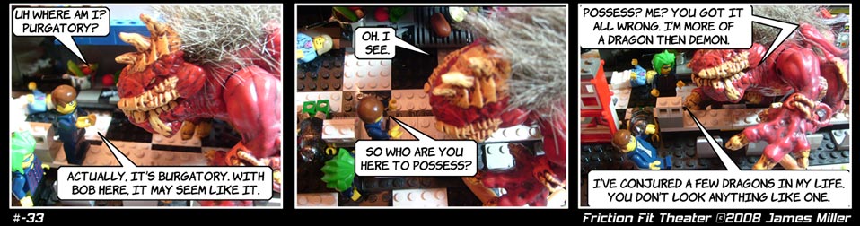 Photoshop at it’s simplest. Now think back to strip 15, the light that Mike and Nick were talking aboot was this one. Originally, this Dragon, a megablok one I believe was named Mike. I rearanged the strips when I got the new dragons from Lego, I had to tweek the story. The Burgatory strips were supposed to be the first ones of FFT. Now it all makes sense.