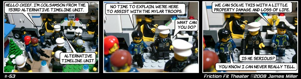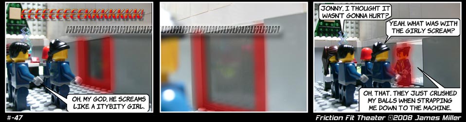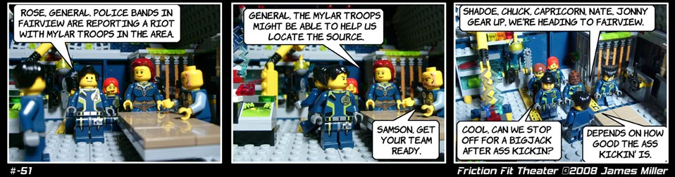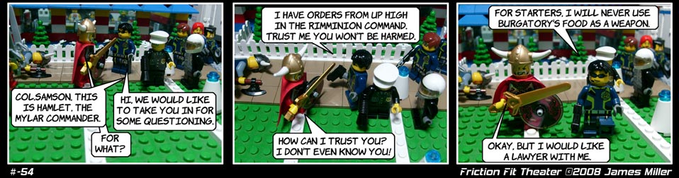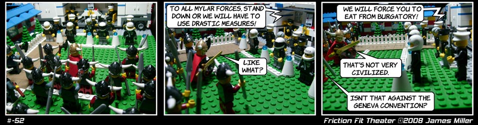 No Viking (Mylar soldier) was hurt during the filming of this comic. He tripped and no one noticed until processing. Oh well, comiking goes on.
