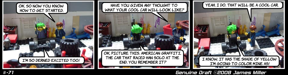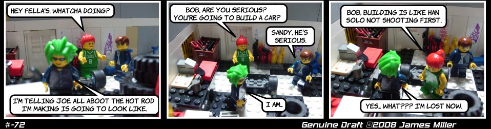 I got the idea for this strip from a guy at carshow who was telling people about this car he was building. When he described it, it was about like the way Bob describes his.