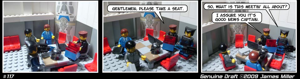 F-1 and F-2’s dialouge is interchangeable. Which is what’s good about generic characters whose main purpose is to give information and move the story. While putting these strips together I was listening to old Webcomic Beacon episodes, the one on was the 1st brainstorming issue and they were discussing how boring it was for them to be stuck in the same location for a comic. It’s easy to write a single location, and filming it I was running out of angles. The set only has 2 removable walls. They could be removed but are walls for other sets. It’s a learning process.