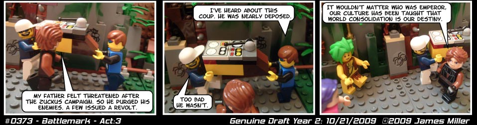 | Genuine Draft: Year 2 Page No.1 BattleMark: Act-3 No.335 to No.403 continued ![]() Strip # 366 Updated On 10/14/09 ![]() The Sons by Daniel Escobedo at www.thesonscomic.com. Thanks Daniel for the anniversary pic! Now everyone go read his comic! ![]() Strip # 367 Updated On 10/15/09 ![]() I've become a big fan of Slightly Off Topic by David Adams and his daughter, Brittany. Thanks for the comic. ![]() ![]() ![]() Strip # 370 Updated On 10/18/09 ![]() Strip # 371 Updated On 10/19/09 ![]() Strip # 372 Updated On 10/20/09 ![]() Strip # 373 Updated On 10/21/09 ![]() Strip # 374 Updated On 10/22/09 ![]() Strip # 375 Updated On 10/23/09 ![]() Strip # 376 Updated On 10/24/09 ![]() Strip # 377 Updated On 10/25/09 ![]() Strip # 378 Updated On 10/26/09 ![]() Strip # 379 Updated On 10/27/09 |